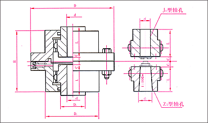 3、J1型軸孔根據(jù)需要,亦可不使用軸端擋板。